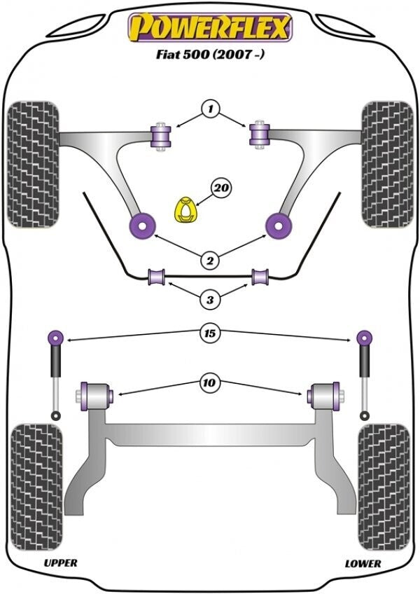 Powerflex draagarm bussen set achterzijde Abarth 500 / 595 /695