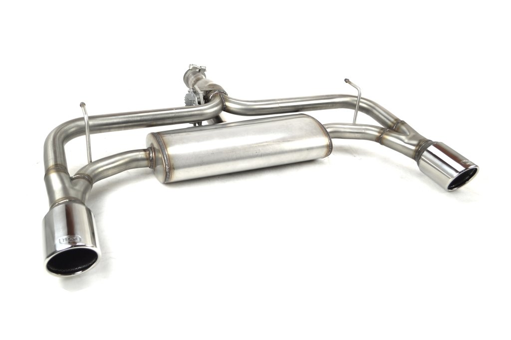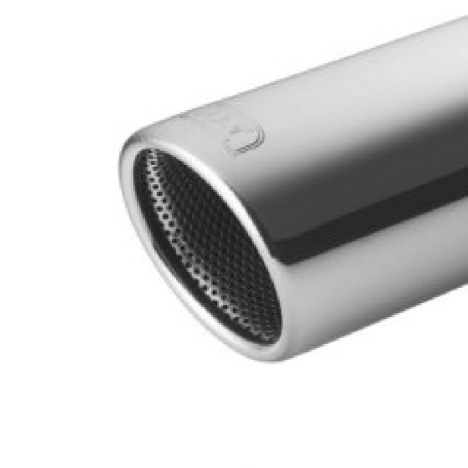 Endschalldämpfer aus Edelstahl mit elektrischem Ventil und Fernbedienung.