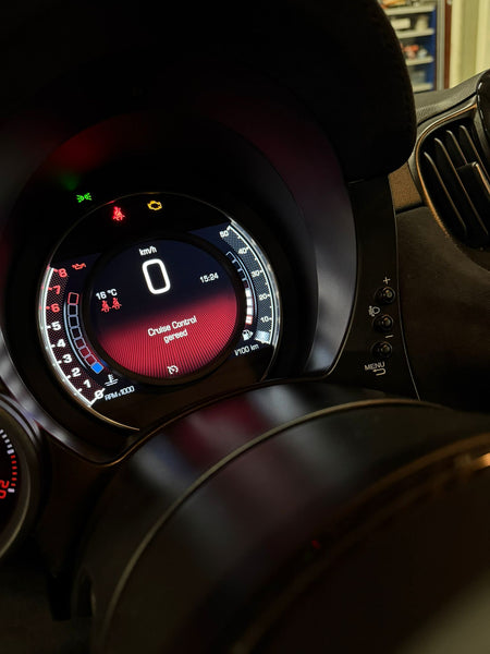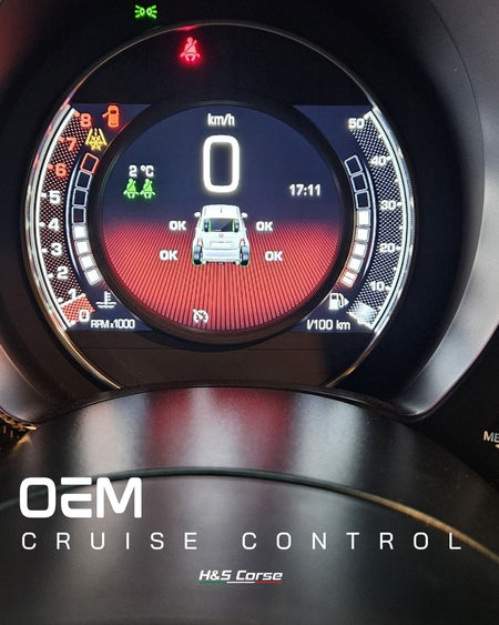 Geen enkele Abarth 595 of 695 is ooit af fabriek geleverd met cruise control. Toch is het voor veel rijders een functie die je bij langere ritten of dagelijks gebruik eigenlijk niet wilt missen.