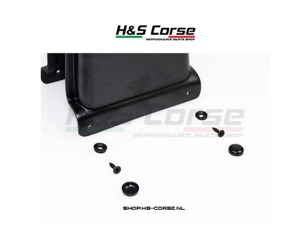 De armsteun wordt geleverd met vier schroeven en kan direct op de middentunnel worden bevestigd. Voor het mooiste resultaat raden we aan om de tunnel kort te verwijderen door de M10-moer onder het rubber van de bekerhouder los te draaien.