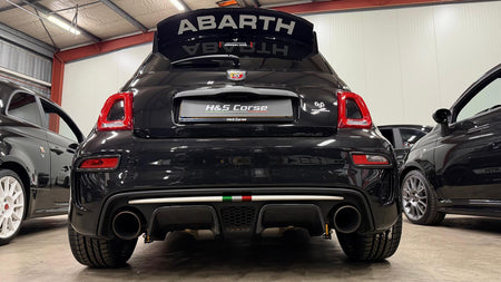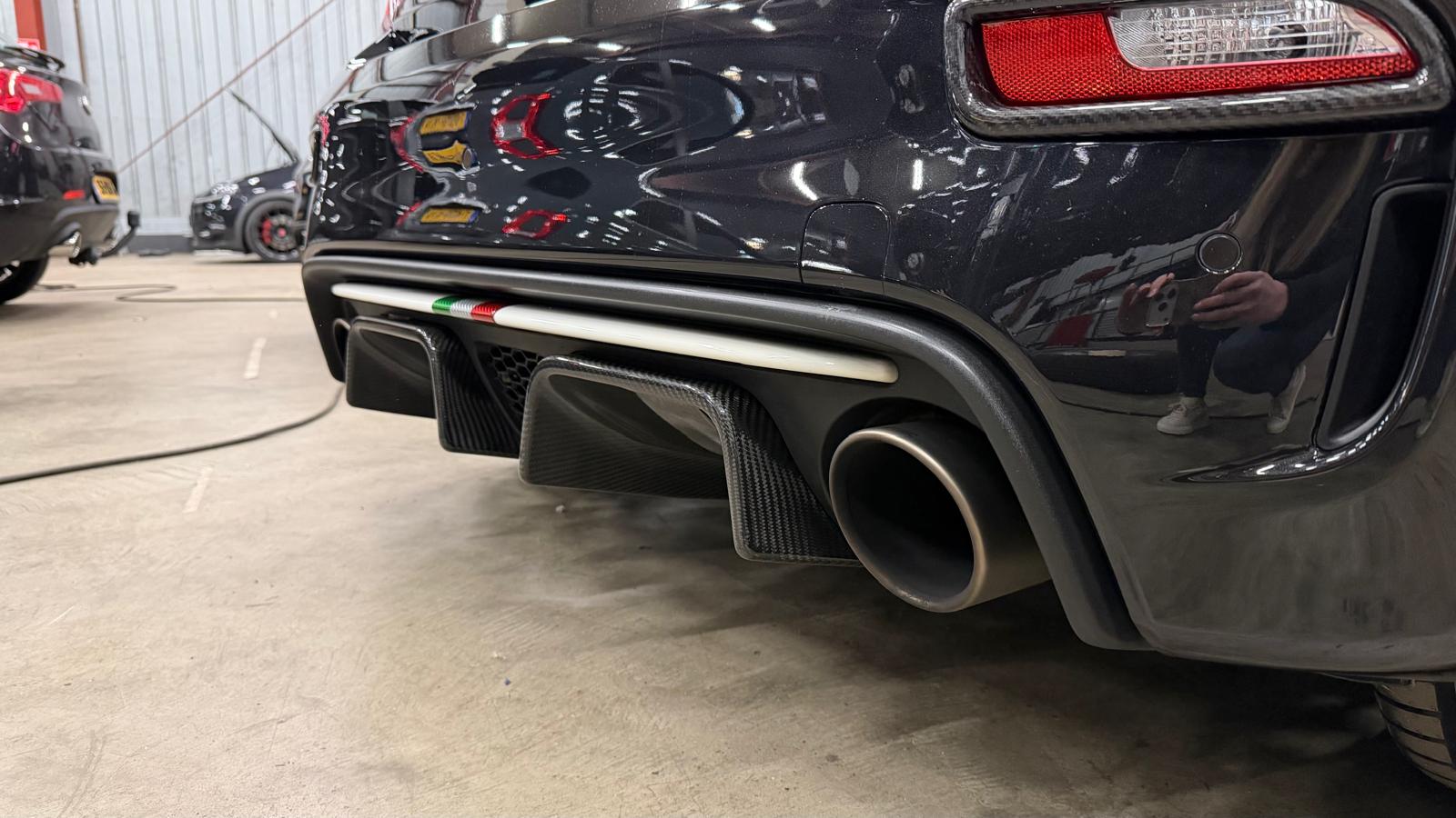 De diffusor zorgt voor een optische verlenging van ongeveer 4 cm, waardoor de achterzijde lager, breder en strakker oogt. Ideaal als finishing touch voor wie net dat beetje extra wil, zonder afbreuk te doen aan de originele lijnen van de Abarth.