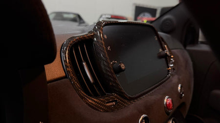 Een subtiele maar stijlvolle upgrade voor het interieur van je Abarth. Dit GPS navigatiescherm frame is vervaardigd uit 100% echt carbonfiber + roosters en zorgt voor een sportieve, hoogwaardige uitstraling.
