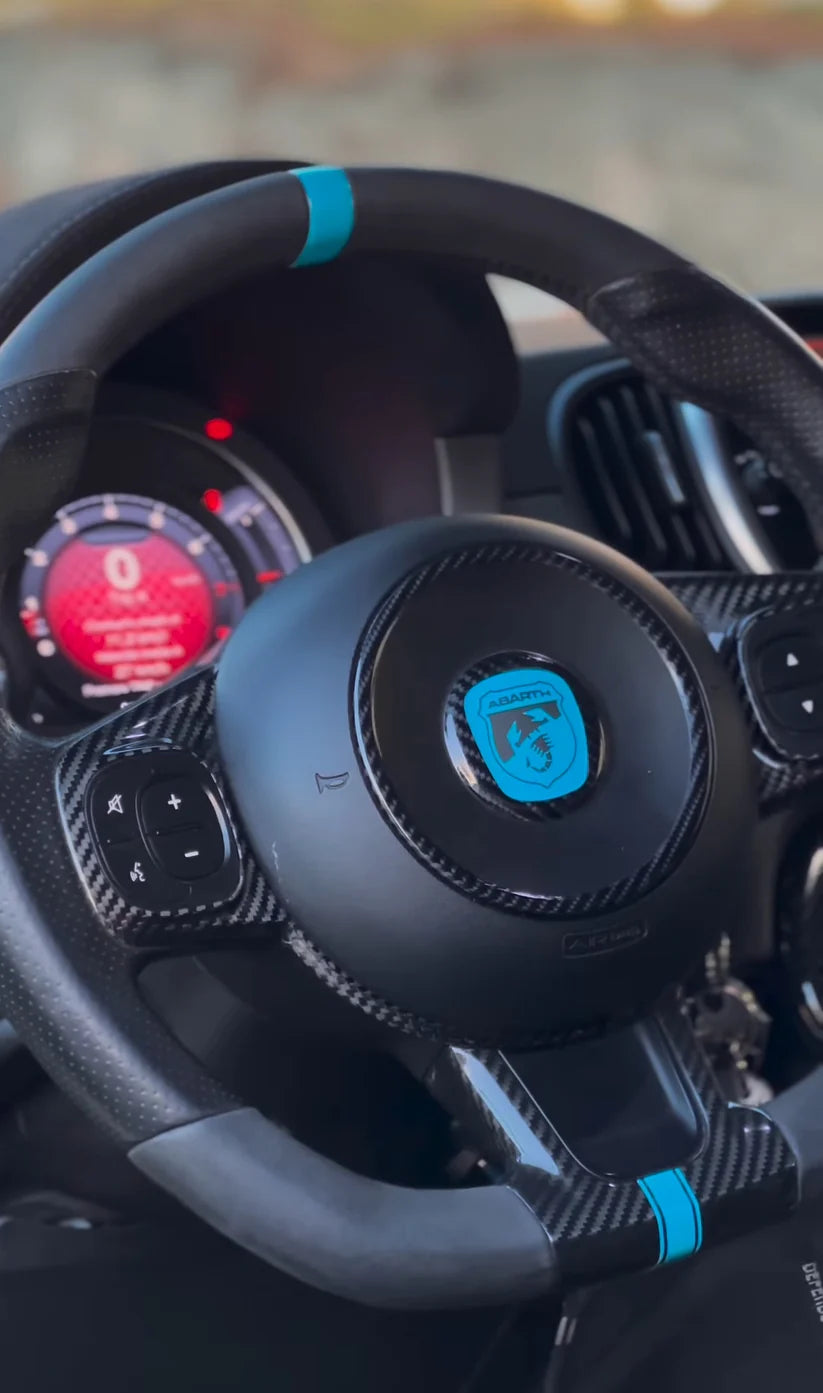Upgrade het interieur van je Abarth 500/595/695 met deze hoogwaardige carbon stuurwiel cover
