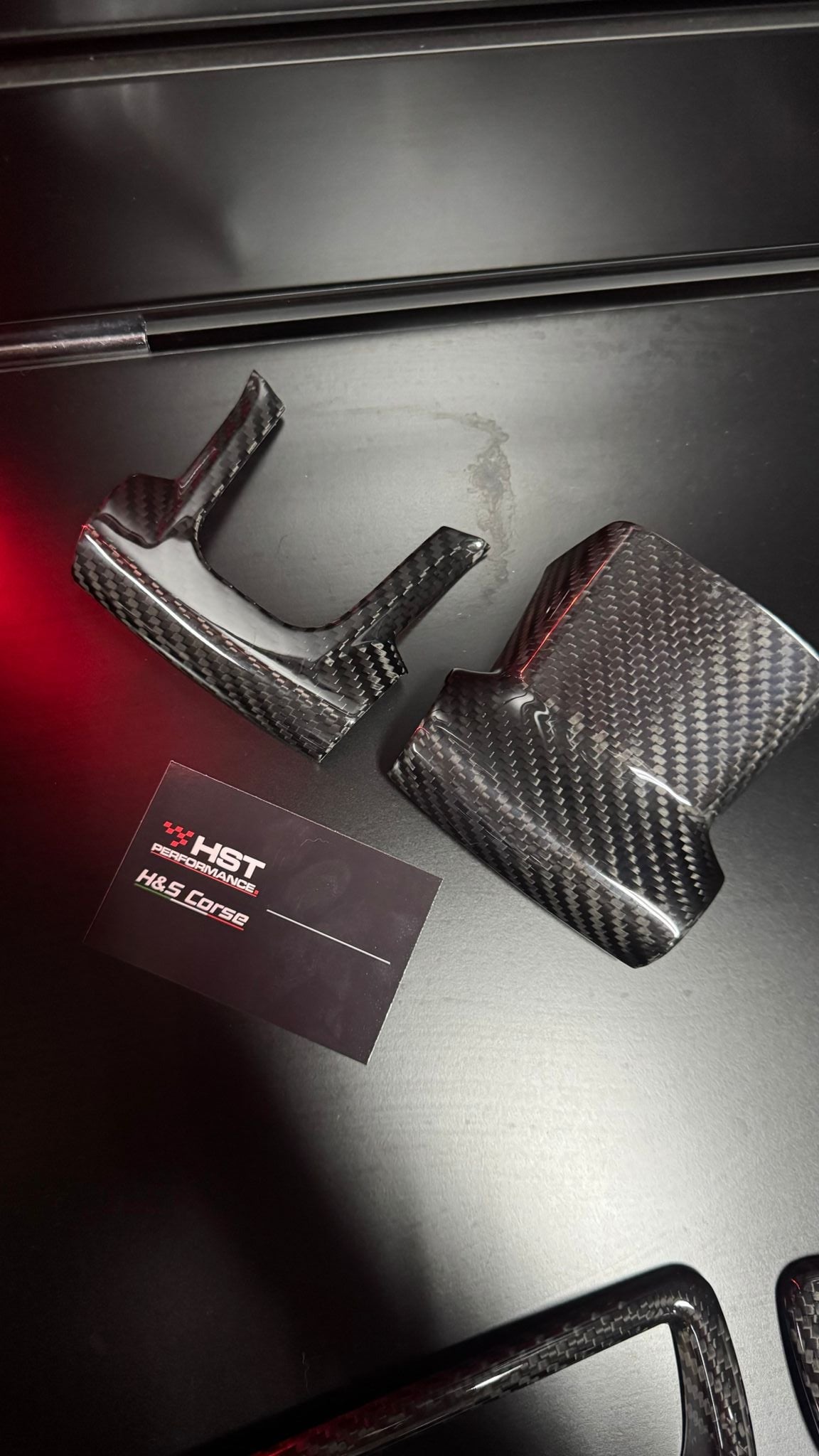Een subtiele, maar stijlvolle upgrade die direct zorgt voor een sportievere uitstraling. Perfect te combineren met andere carbon accenten in het interieur.