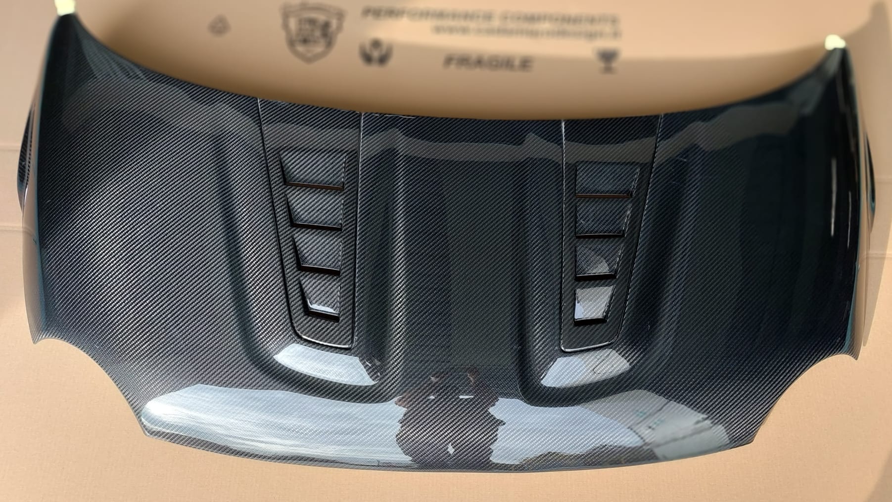 Deze motorkap is volledig gemaakt van echt carbon fiber en geeft een mega stoere uitstraling aan je Abarth!