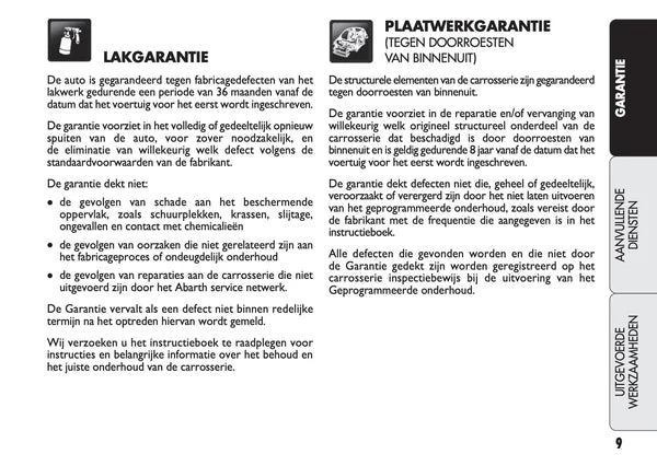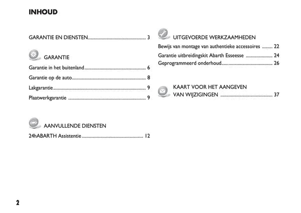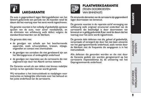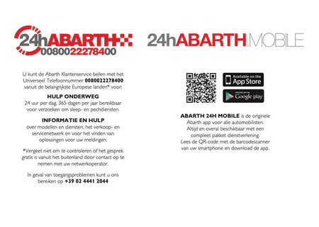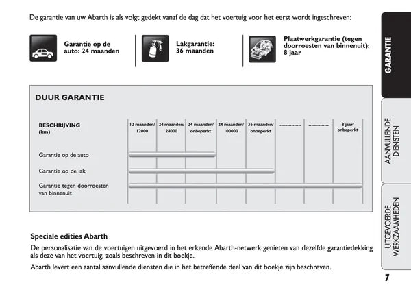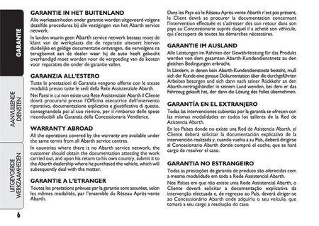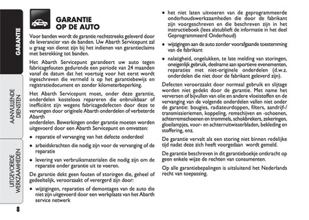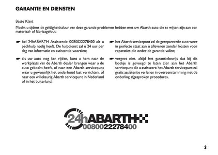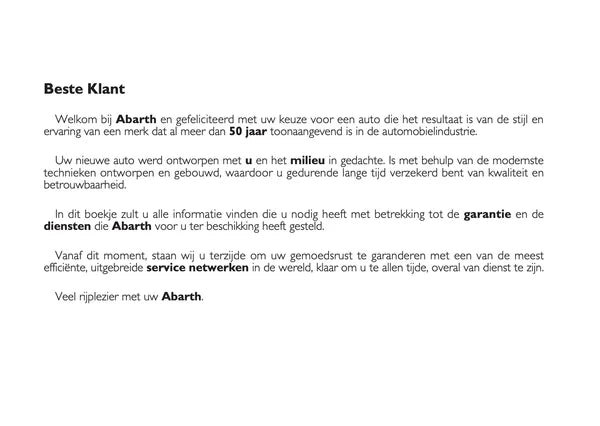 Het originele onderhoudsboekje “Garantie & Diensten” voor de Abarth 500, 595 en 695. Een essentieel document voor iedere eigenaar die waarde hecht aan een sluitende onderhoudshistorie.