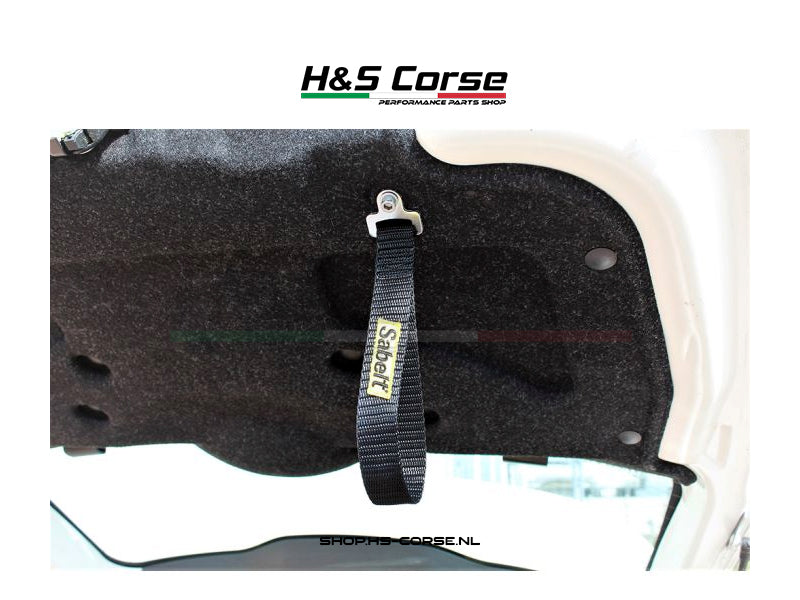 Origineel Sabelt-product, ontworpen als functionele en sportieve vervanger van de standaard greep. Zorgt voor een comfortabele sluiting van de kofferbak en geeft je interieur direct een motorsport-look.