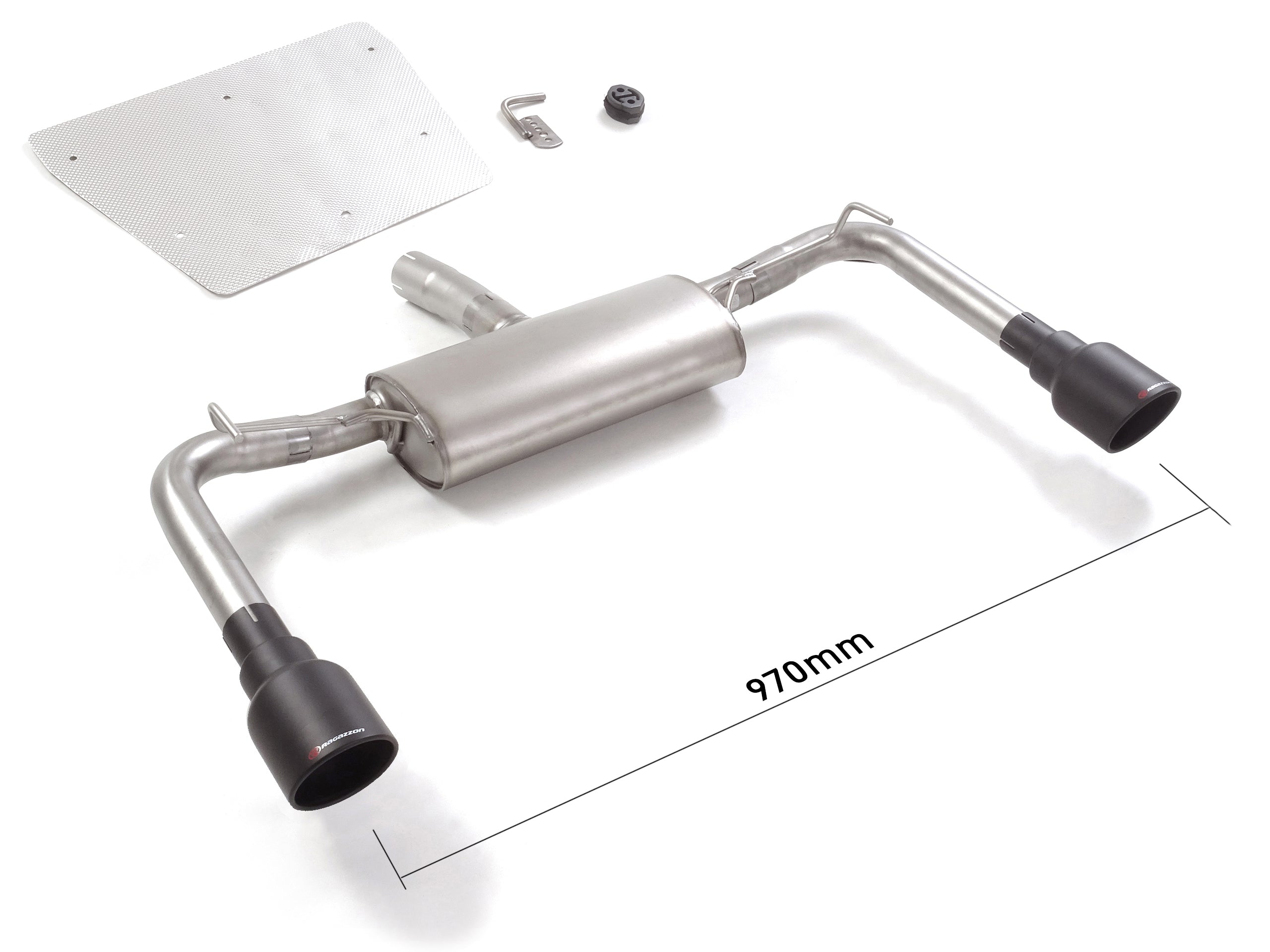 Bij de optie 2x80mm Staggered: aanpassing originele achterbumper vereist of Cadamuro Design achterskirt)