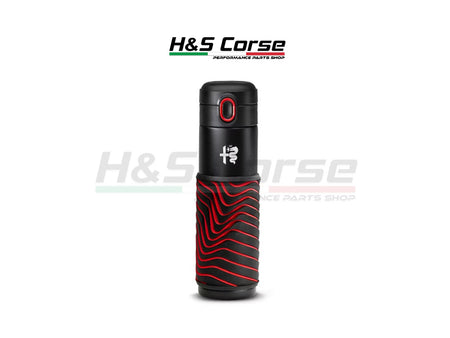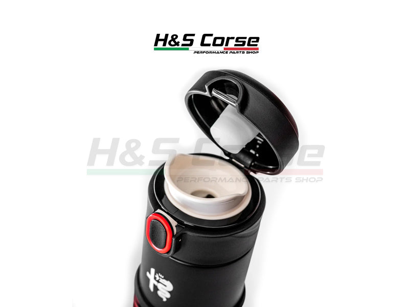 De fles opent eenvoudig met een drukknop, afgewerkt met een subtiel rood detail. Aan de buitenzijde bevindt zich een 3D siliconen grip in zwart en rood met het ingevreesde Alfa Romeo logo, wat zorgt voor extra grip én een sportieve look. Het Alfa Romeo logo in wit op de voorzijde maakt het ontwerp helemaal af.