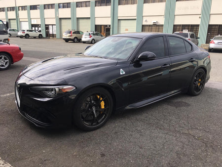 De hoogte van een niet-verlaagde Giulia Quadrifoglio is in 2017 gewijzigd. Modellen vanaf medio 2017 staan aanzienlijk hoger dan eerdere bouwjaren. Daarom wordt er bij dit model geen vaste verlaging in millimeters vermeld.
