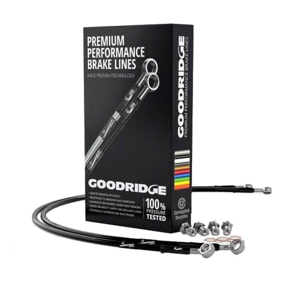 Goodridge Remslangen zijn de standaard in de professionele motorsport en tuningsmarkt. Goodridge remslangen verhogen de rem efficiëntie en verwijderen het sponsgevoel onder zware omstandigheden. Deze remslangen zijn een plug & play oplossing voor uw originele remslangen!