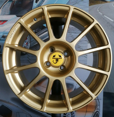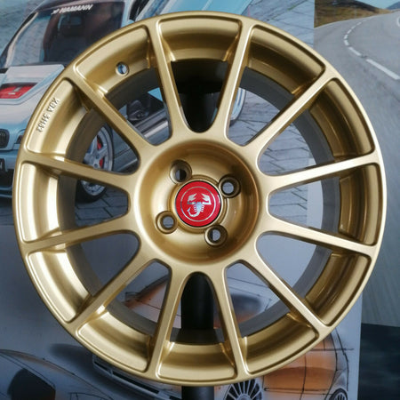 Voorzien van Abarth naafkapjes. Verkrijgbaar in rood en geel.